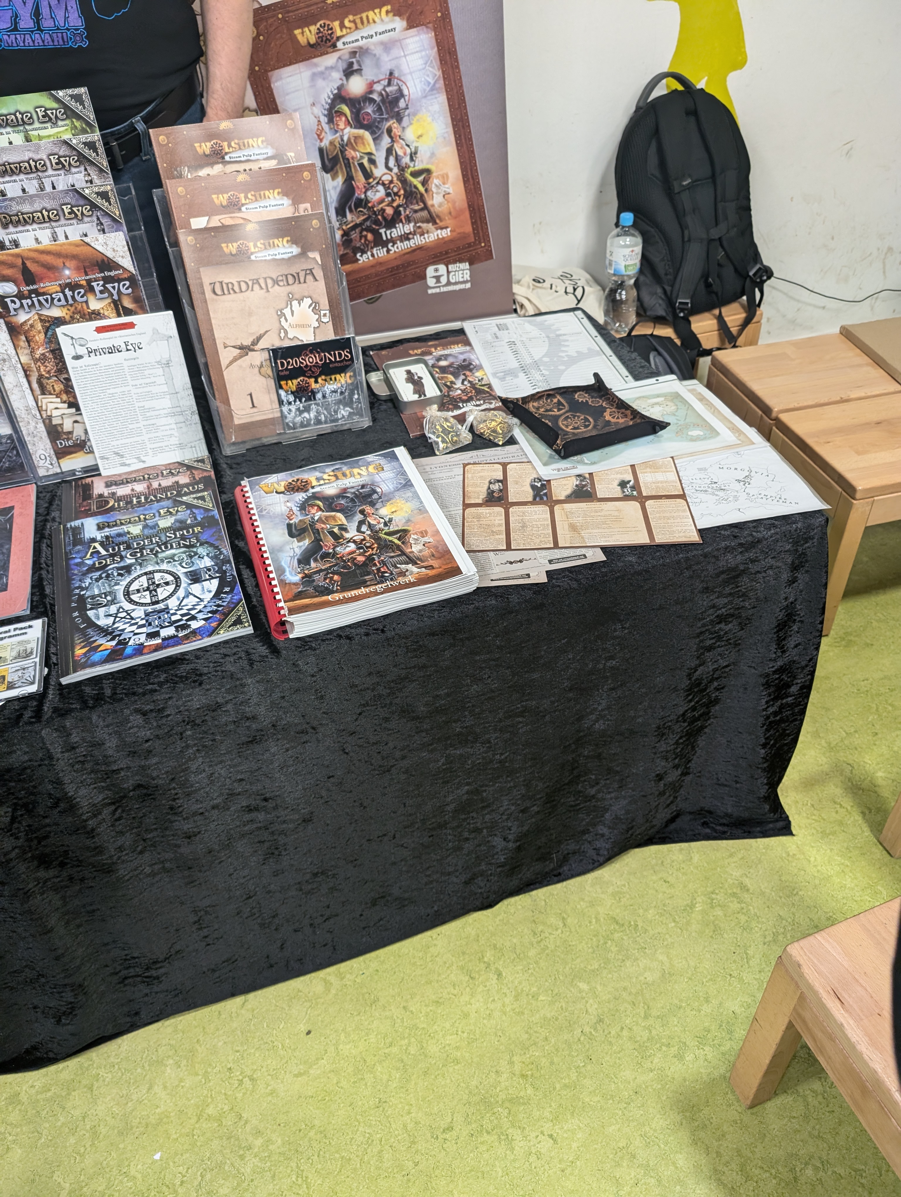 Für mich zu guter Letzt gab es auch noch einen netten Plausch mit den Machern von Dieseldrachen, Dragon Pulp Games. Einem Spiel, bei dem ich tatsächlich gerade im Weltenband lese und nach aktuellem Stand wohl auch sehr bald das Regelwerk dazu kaufen werde. 😉