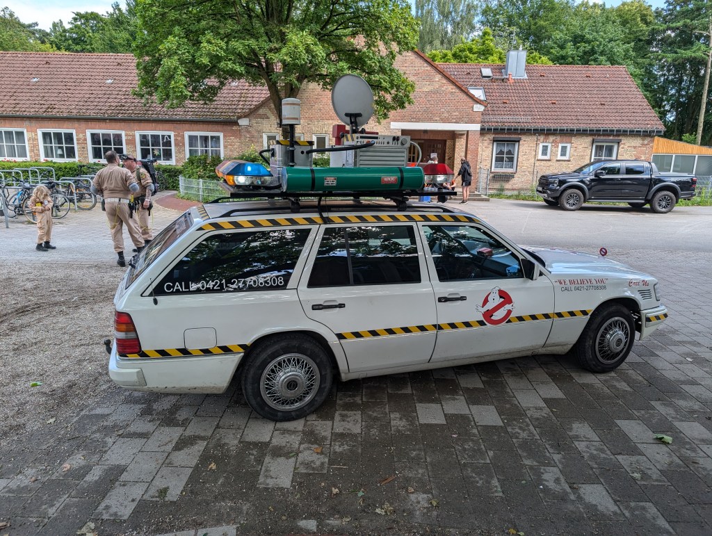 Angekommen, Parkplatz suchen, die Con findet in einer Schule statt und da diese in einem Wohngebiet steht, ist es, wie bei so vielen Cons schwer einen Parkplatz zu finden. Aber der Olfork wäre nicht derOlfork, wenn er nicht so eine kleine Lücke für den Herrn Fröhlich, ja mein Auto hat einen Namen, finden würde. Also parken, aussteigen und die letzten 700 Meter zu Fuß. Nimm mal die Regenjacke mit denke ich noch so bei mir und dann ging es los. Platzregen, Wind und noch mehr Regen. Ich also unter einen Baum und Abwarten. Zum Glück dauerte es nur ein paar Minuten, genug, damit selbst meine Regenjacke durch war, aber zu wenig um mir die Lust zu verderben.
